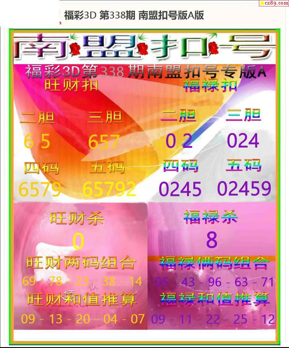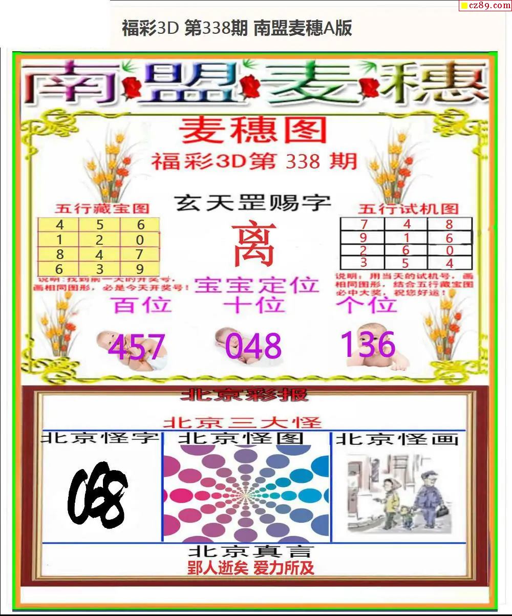 福彩3D2025338期南盟麦穗AB版+南盟扣号AB版-千禧3d试机号金码_3D试机号今天晚上金码_福彩3d试机号今天关注金码